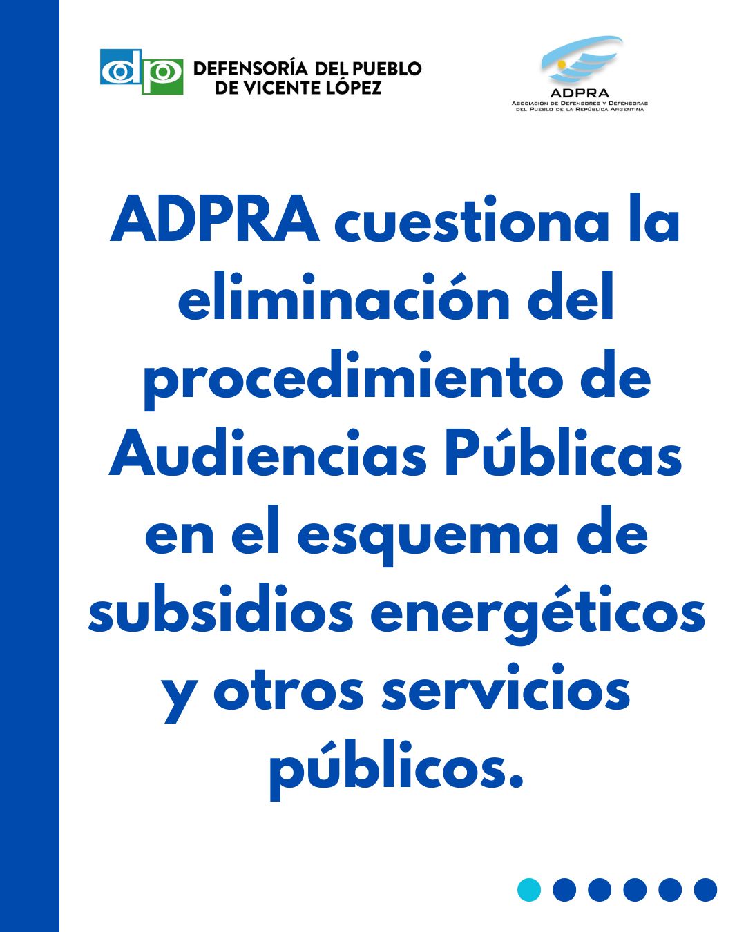 📨 Comunicado oficial de la Asociación de Defensorías del Pueblo de la República Argentina (@defensoriasadpra) sobre la eliminación de las audiencias públicas en el esquema de subsidios energéticos y servicios públicos domiciliarios